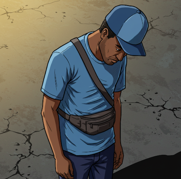 At that point, our new friend comes over. He has a devastated look on his face.